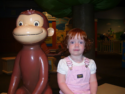 Our first stop was some fun with Curious George. Here is Madelyn giving me her best Monkey face.